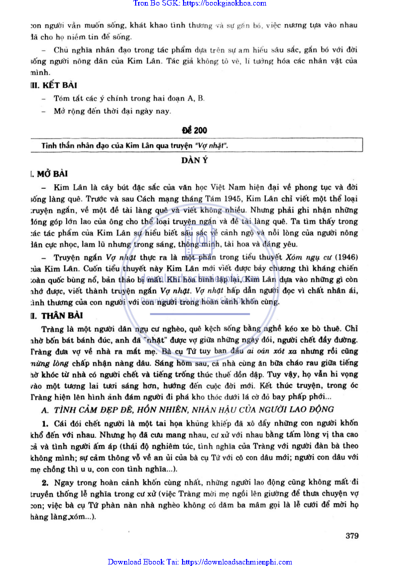 ĐỀ 199. PHÂN TÍCH TRUYỆN NGẮN “VỢ NHẶT” CỦA KIM LÂN ĐỂ THẤY RÕ GIÁ TRỊ NHÂN ĐẠO SÂU SẮC CỦA TÁC PHẨM