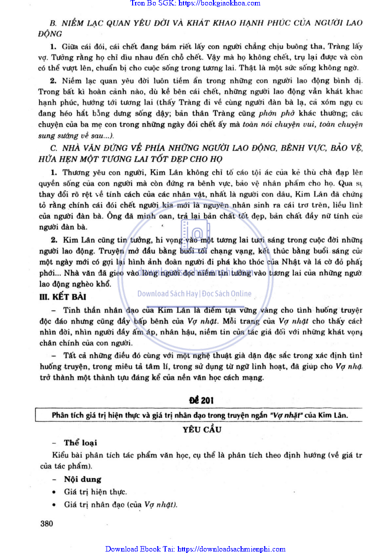 - ĐỀ 201. PHÂN TÍCH GIÁ TRỊ HIỆN THỰC VÀ GIÁ TRỊ NHÂN ĐẠO TRONG TRUYỆN NGẮN “VỢ NHẶT” CỦA KIM LÂN