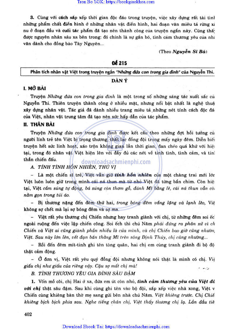 - ĐỀ 215. PHÂN TÍCH NHÂN VẬT VIỆT TRONG TRUYỆN NGẮN “NHỮNG ĐỨA CON TRONG GIA ĐÌNH” CỦA NGUYỄN THI
