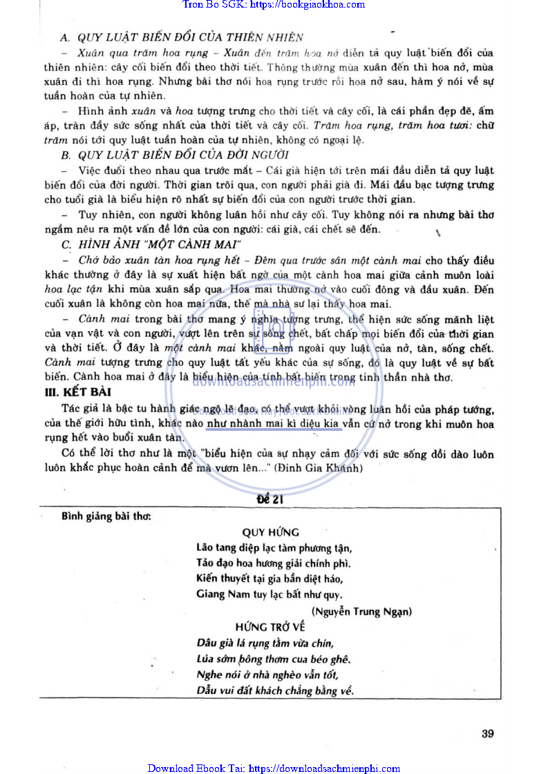 ĐỀ 23. BÌNH GIẢNG BÀI THƠ “QUY HỨNG” (HỨNG TRỞ VỀ)