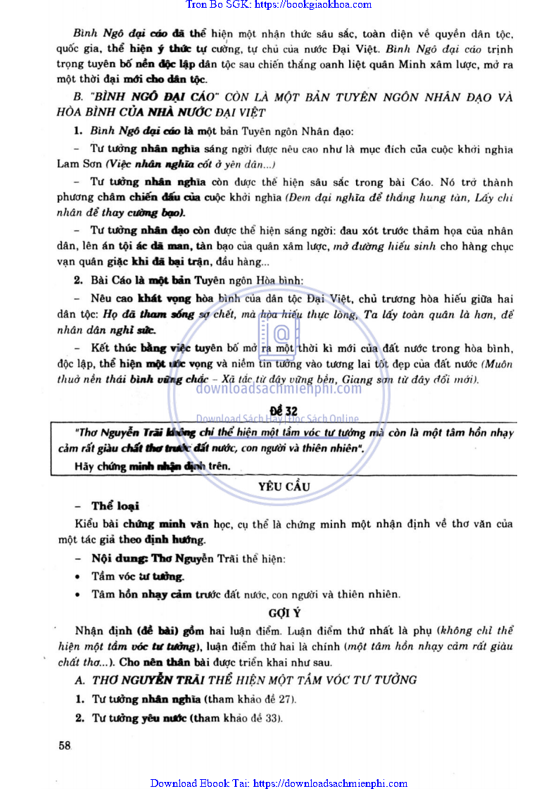 ĐỀ 33. “THƠ NGUYỄN TRÃI KHÔNG CHỈ THỂ HIỆN TẦM VÓC TƯ TƯỞNG MÀ CÒN LÀ MỘT TÂM HỒN NHẠY CẢM RẤT GIÀU CHẤT THƠ TRƯỚC ĐẤT NƯỚC, CON NGƯỜI VÀ THIÊN NHIÊN”. HÃY CHỨNG MINH NHẬN ĐỊNH TRÊN