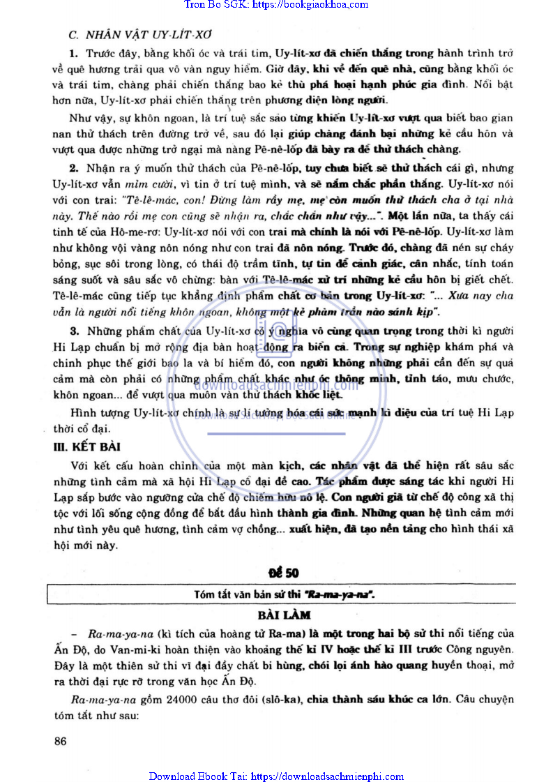 - ĐỀ 51. PHÂN TÍCH ĐOẠN “UY-LÍT-XƠ TRỞ VỀ” TRÍCH KHÚC CA XXIII, SỬ THI “Ô-ĐI-XÊ” CỦA HÔ-ME-RƠ