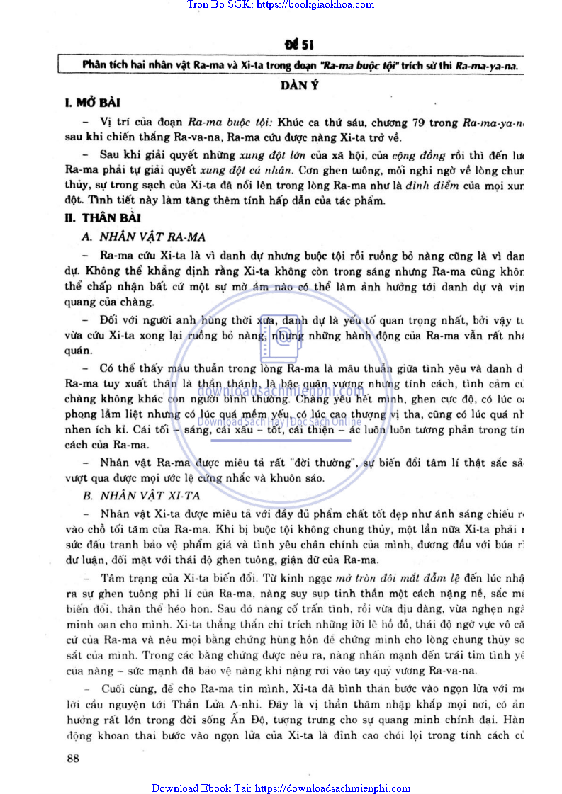 ĐỀ 53. PHÂN TÍCH HAI NHÂN VẬT RA-MA VÀ XI-TA TRONG ĐOẠN “RA-MA BUỘC TỘI” TRÍCH SỬ THI “RA-MA-YA-NA”