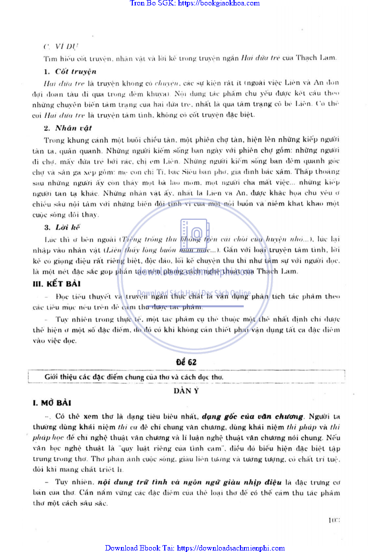 - ĐỀ 61. GIỚI THIỆU CÁC ĐẶC ĐIỂM CHUNG CỦA TIỂU THUYẾT, TRUYỆN NGẮN VÀ CÁCH ĐỌC HAI THỂ LOẠI VĂN HỌC NÀY
