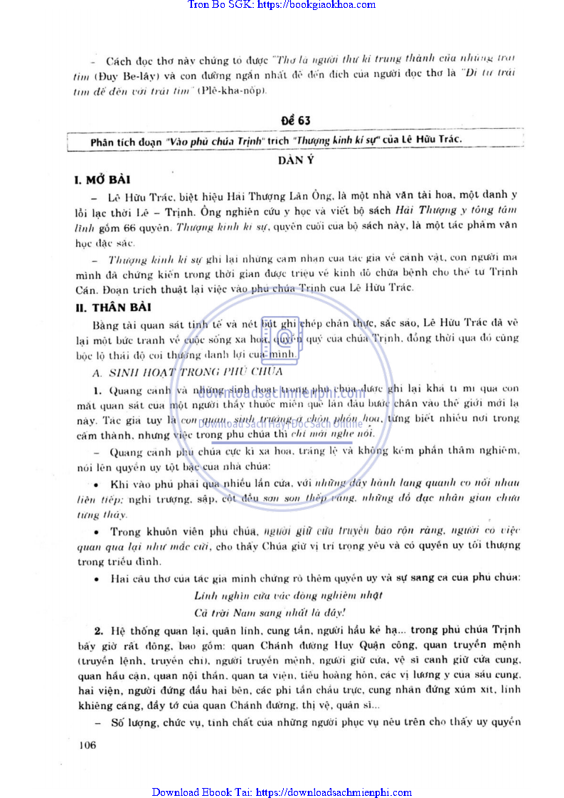 - ĐỀ 63. PHÂN TÍCH ĐOẠN “VÀO PHỦ CHÚA TRỊNH” TRÍCH “THƯỢNG KINH KÍ SỰ” CỦA LÊ HỮU TRÁC