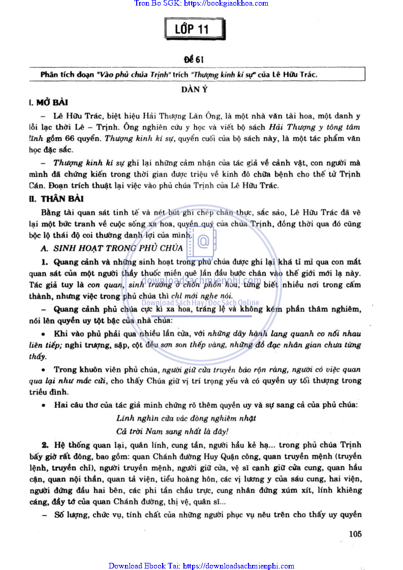 ĐỀ 63. PHÂN TÍCH ĐOẠN “VÀO PHỦ CHÚA TRỊNH” TRÍCH “THƯỢNG KINH KÍ SỰ” CỦA LÊ HỮU TRÁC