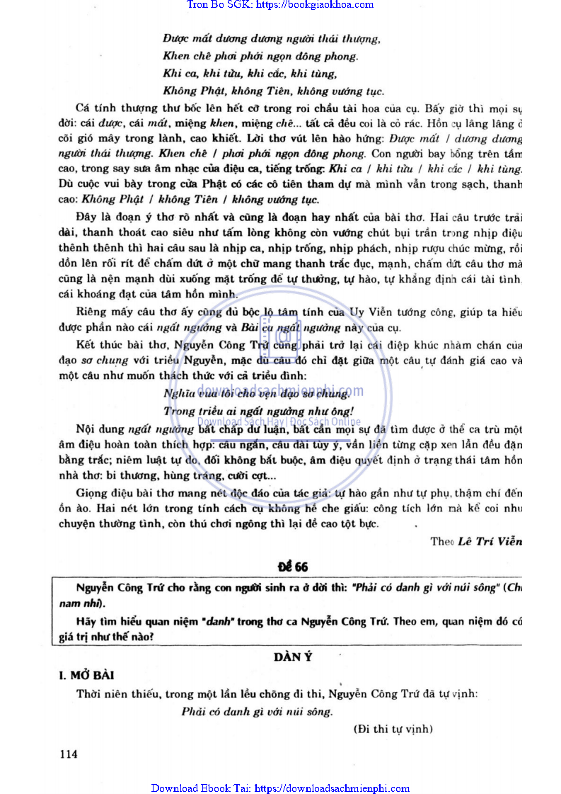ĐỀ 66. PHÂN TÍCH “BÀI CA NGẤT NGƯỠNG” CỦA NGUYỄN CÔNG TRỨ