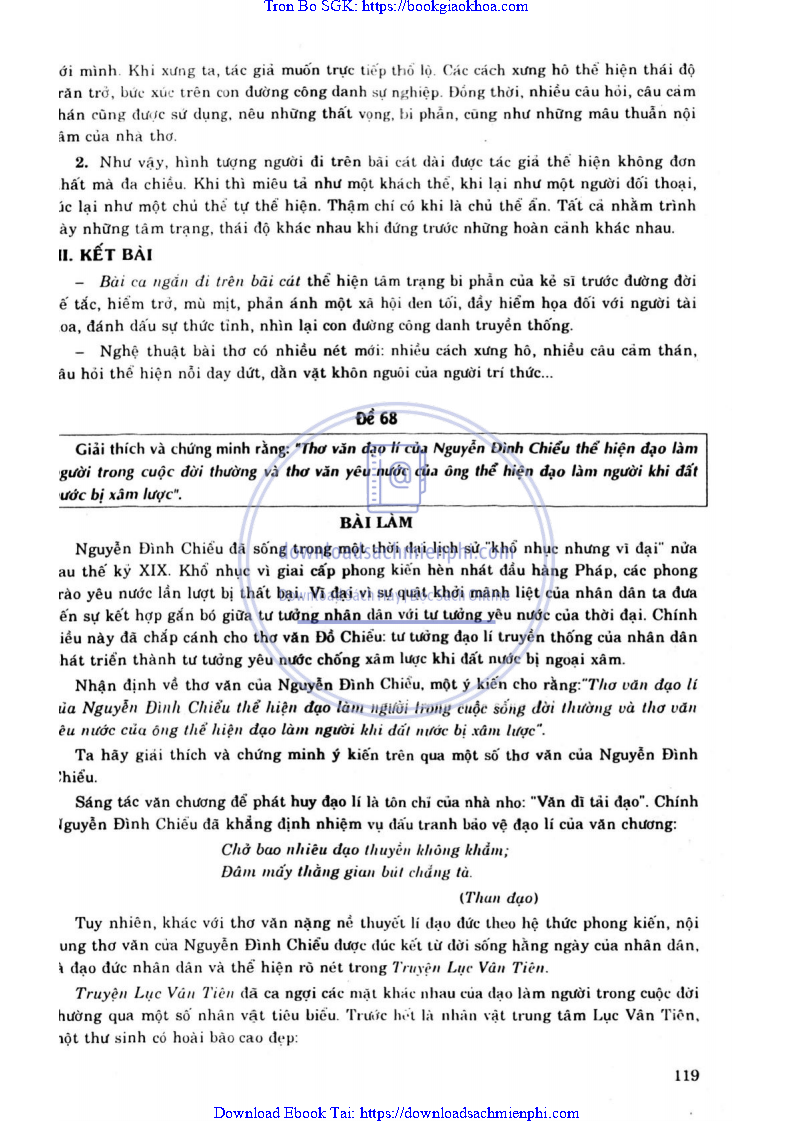 - ĐỀ 69. GIẢI THÍCH VÀ CHỨNG MINH RẰNG: “THƠ VĂN ĐẠO LÍ CỦA NGUYỄN ĐÌNH CHIỂU THỂ HIỆN ĐẠO LÀM NGƯỜI TRONG CUỘC ĐỜI THƯỜNG VÀ THƠ VĂN YÊU NƯỚC CỦA ÔNG THỂ HIỆN ĐẠO LÀM NGƯỜI KHI ĐẤT NƯỚC BỊ XÂM LƯỢC”