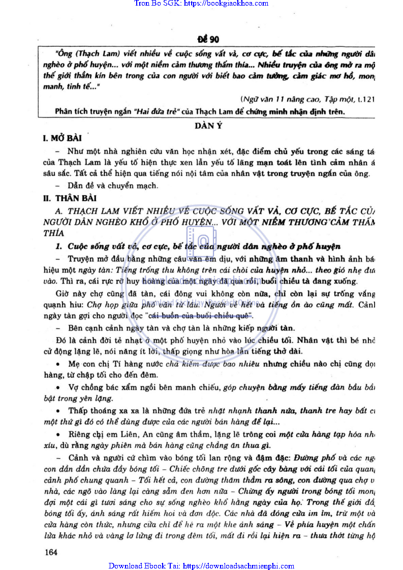 ĐỀ 91. “ÔNG VIẾT NHIỀU VỀ CUỘC SỐNG VẤT VẢ, CƠ CỰC, BẾ TẮC CỦA NHỮNG NGƯỜI DÂN NGHÈO Ở PHỐ HUYỆN… VỚI MỘT NIỀM CẢM THƯƠNG THẤM THÍA… NHIỀU TRUYỆN CỦA ÔNG MỞ RA MỘT THẾ GIỚI THẦM KÍN BÊN TRONG CỦA CON NGƯỜI VỚI BIẾT BAO CẢM TƯỞNG, CẢM GIÁC MƠ HỒ, MONG MANH, TINH TẾ…” PHÂN TÍCH TRUYỆN NGẮN “HAI ĐỨA TRẺ” ĐỂ CHỨNG MINH NHẬN ĐỊNH TRÊN