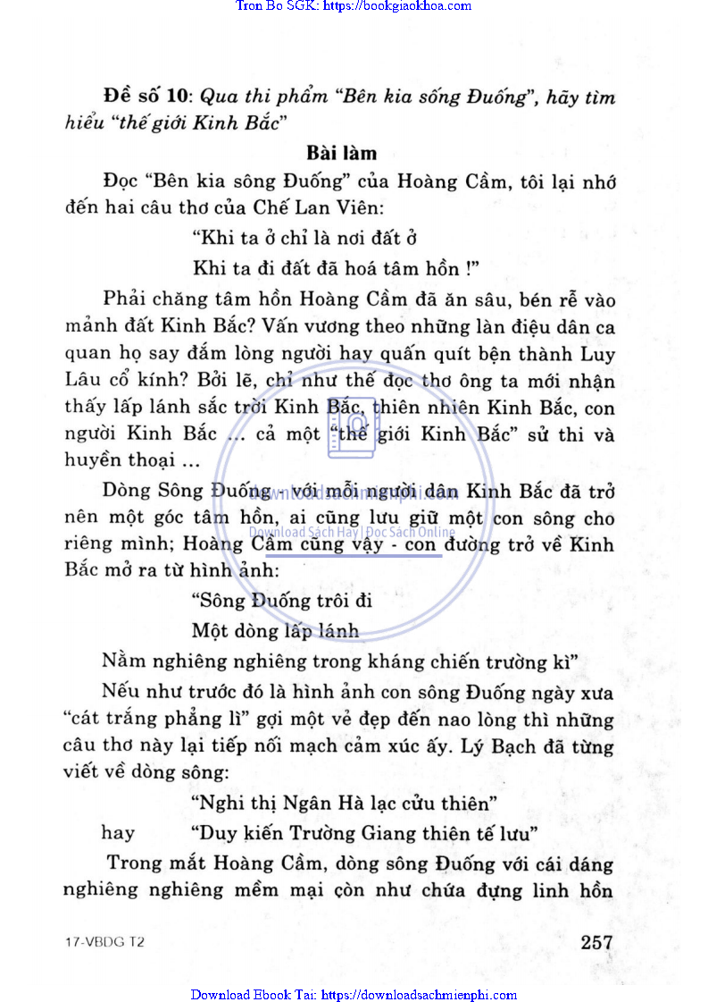 ĐỀ 10. QUA THI PHẨM “BÊN KIA SÔNG ĐUỐNG”, HÃY TÌM HIỂU “THẾ GIỚI KINH BẮC”