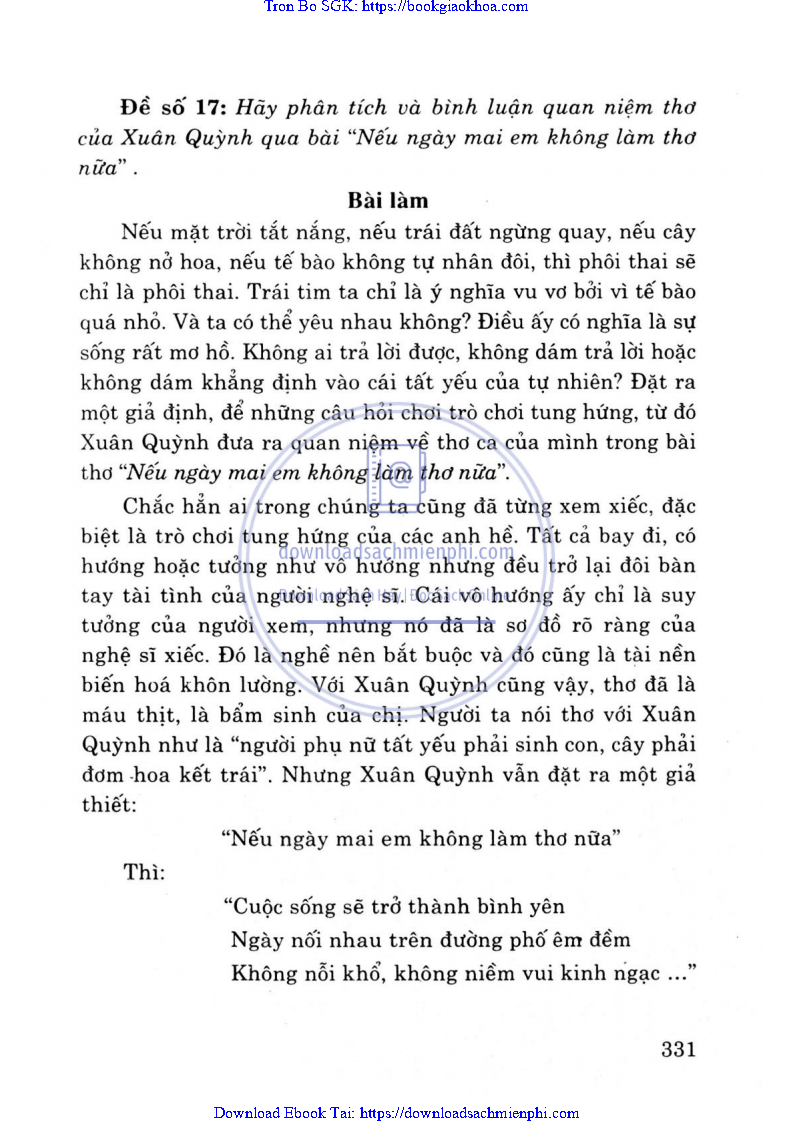 - ĐỀ 17. HÃY PHÂN TÍCH VÀ BÌNH LUẬN QUAN NIỆM THƠ CỦA XUÂN QUỲNH QUA BÀI “NẾU NGÀY MAI EM KHÔNG LÀM THƠ NỮA”