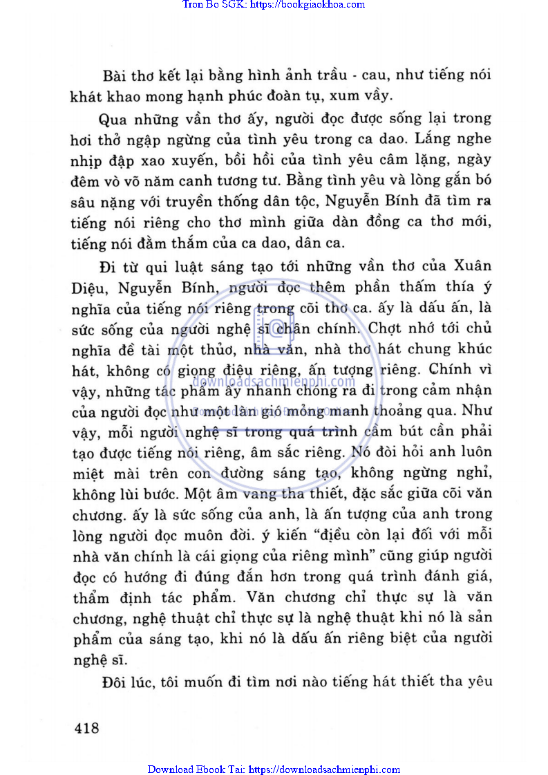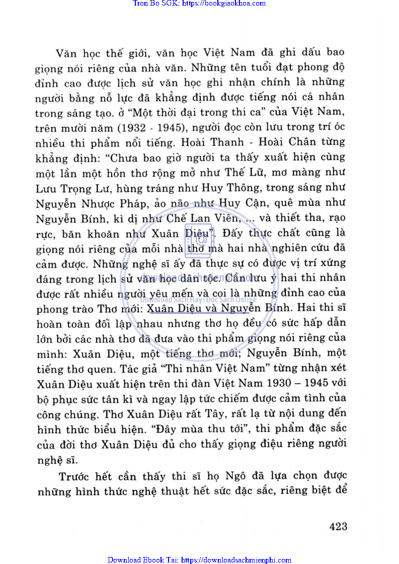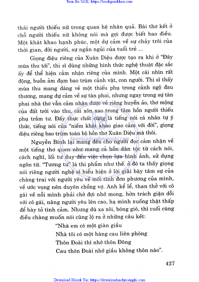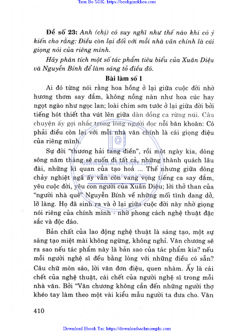- ĐỀ 23. ANH (CHỊ) CÓ SUY NGHĨ NHƯ THẾ NÀO KHI CÓ Ý KIẾN CHO RẰNG: ĐIỀU CÒN LẠI ĐỐI VỚI MỖI NHÀ VĂN CHÍNH LÀ CAI GIỌNG NÓI CỦA RIÊNG MÌNH. HÃY PHÂN TÍCH MỘT SỐ TÁC PHẨM TIÊU BIỂU CỦA XUÂN DIỆU VÀ NGUYỄN BÍNH ĐỂ LÀM SÁNG TỎ ĐIỀU ĐÓ